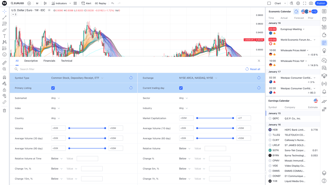TradingView Desktop chart and asset screener.